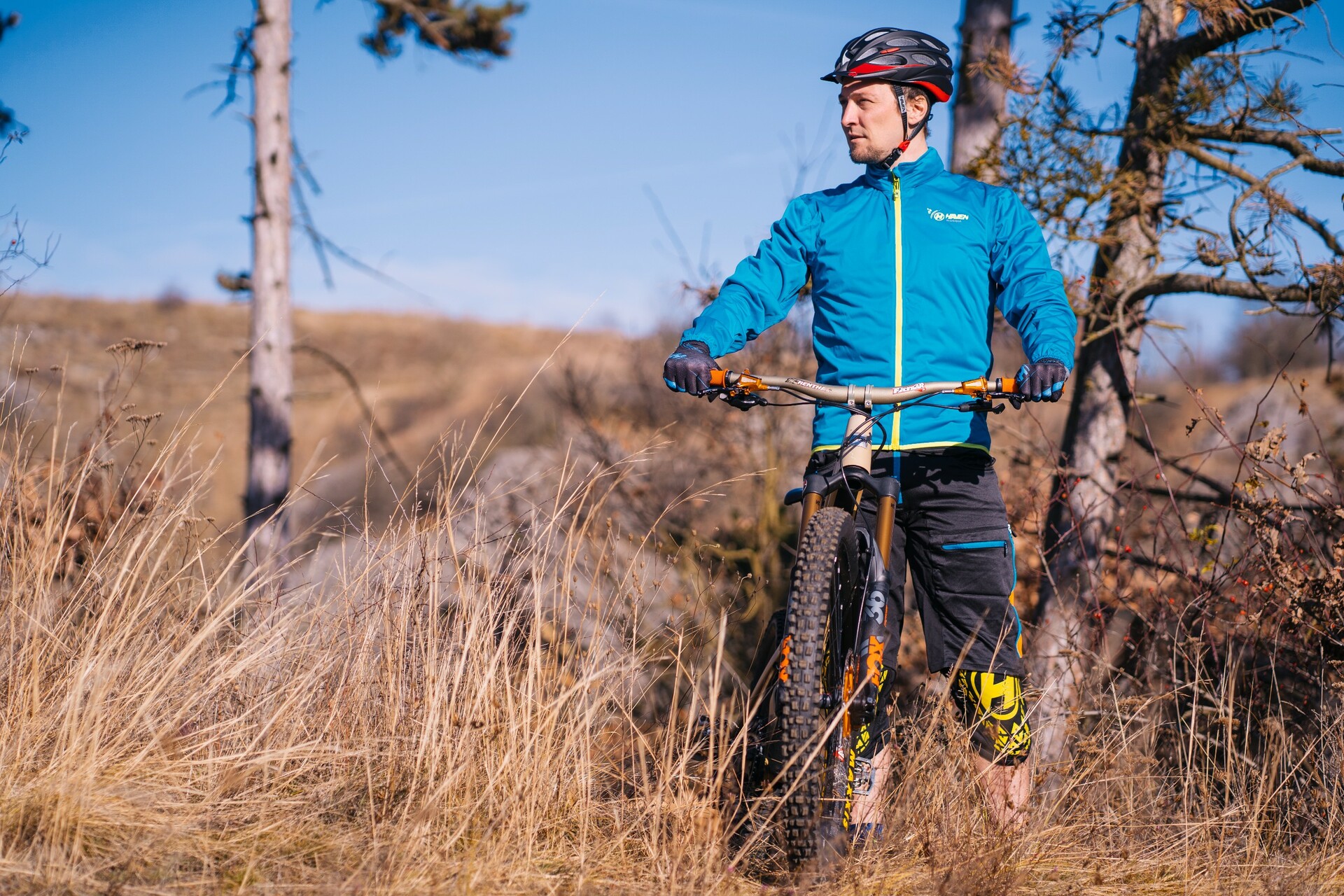 Prodloužené absorbéry zakrývající koleno i holenní kost z materiálu SBR s výbornou tlumící schopností.
