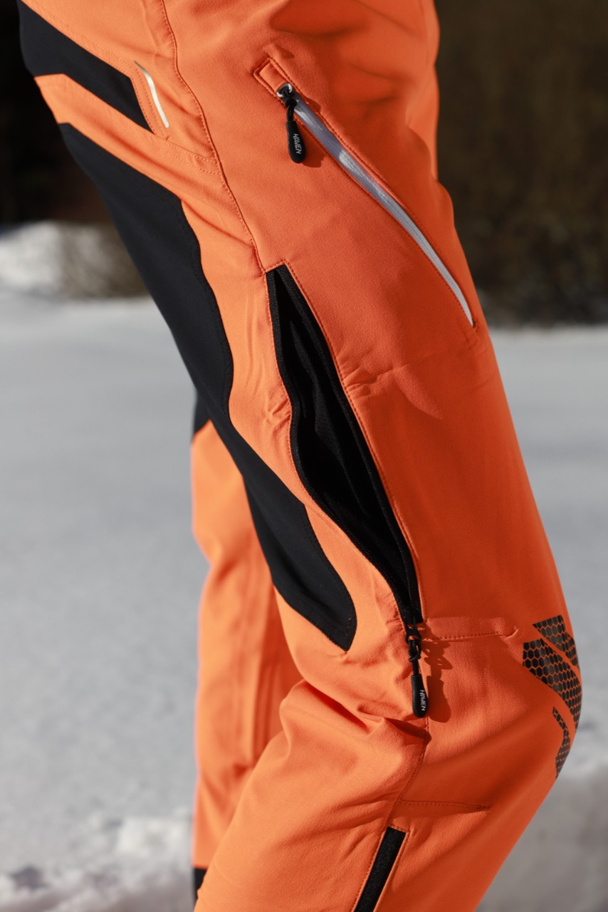 - regulace šířky spodní části nohavice na zip je optimalizována tak, aby se přizpůsobila lyžařské, běžkařské a turistické obuvi