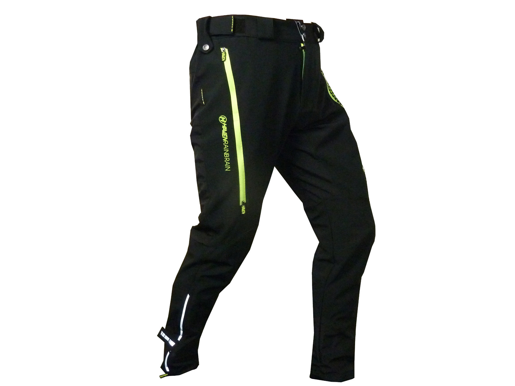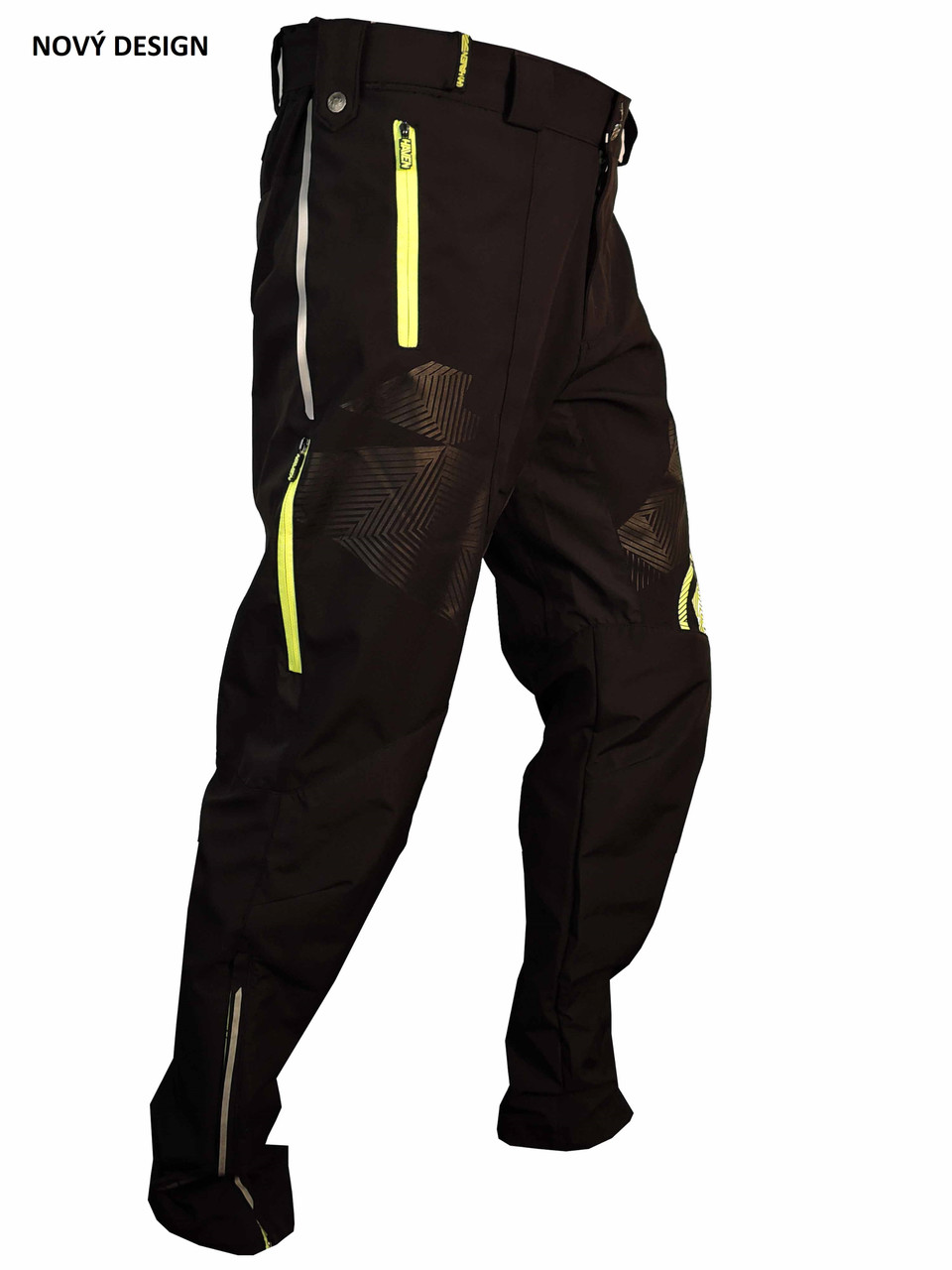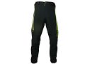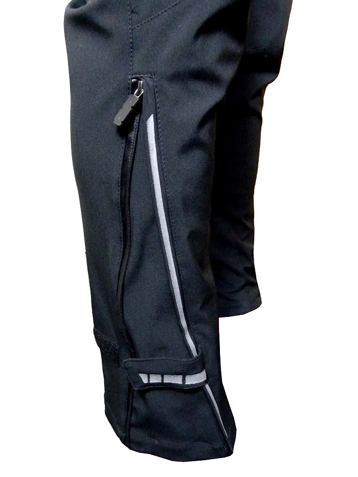 Nastavitelný obvod pasu, větrací zipy, možnost rozšíření i zúžení nohavic, stažení nohavic proti zachycení a ušpinění řetězem, velké množství reflexe.