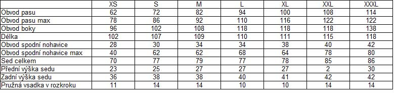 ID:2661Nastavitelný obvod pasu, větrací zipy, možnost rozšíření i zúžení nohavic... Více informací