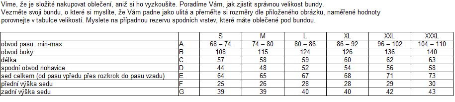Samozřejmostí jsou pružné panely v rozkroku a zadní části pro ničím neomezující pohyblivost, kapsy se zipy, možnost odvětrání, laser odvětrání i v rozkroku.