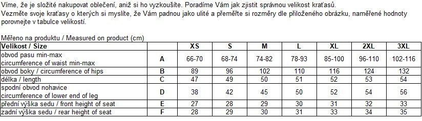 Samozřejmostí jsou pružné panely pro ničím neomezující pohyblivost, kapsy se zipy, laser odvětrání na vnitřní straně stehen.