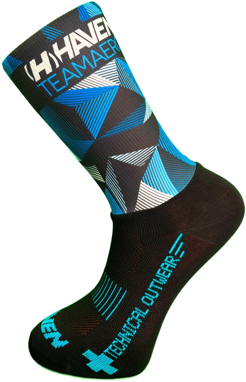 Spodní část je vyrobena z polypropylenu a polyamidu, aby dobře odváděla vlhkost od těla a zároveň byla mechanicky odolná oděru. Snažíme se vyhnout tomu, aby aerodynamika byla na úkor přehřívání a tím ztrátě výkonu. Svrchní aero část je vybavena širším silikonovým pruhem v lemu, aby nedocházelo ke sjíždění ponožky dolů.