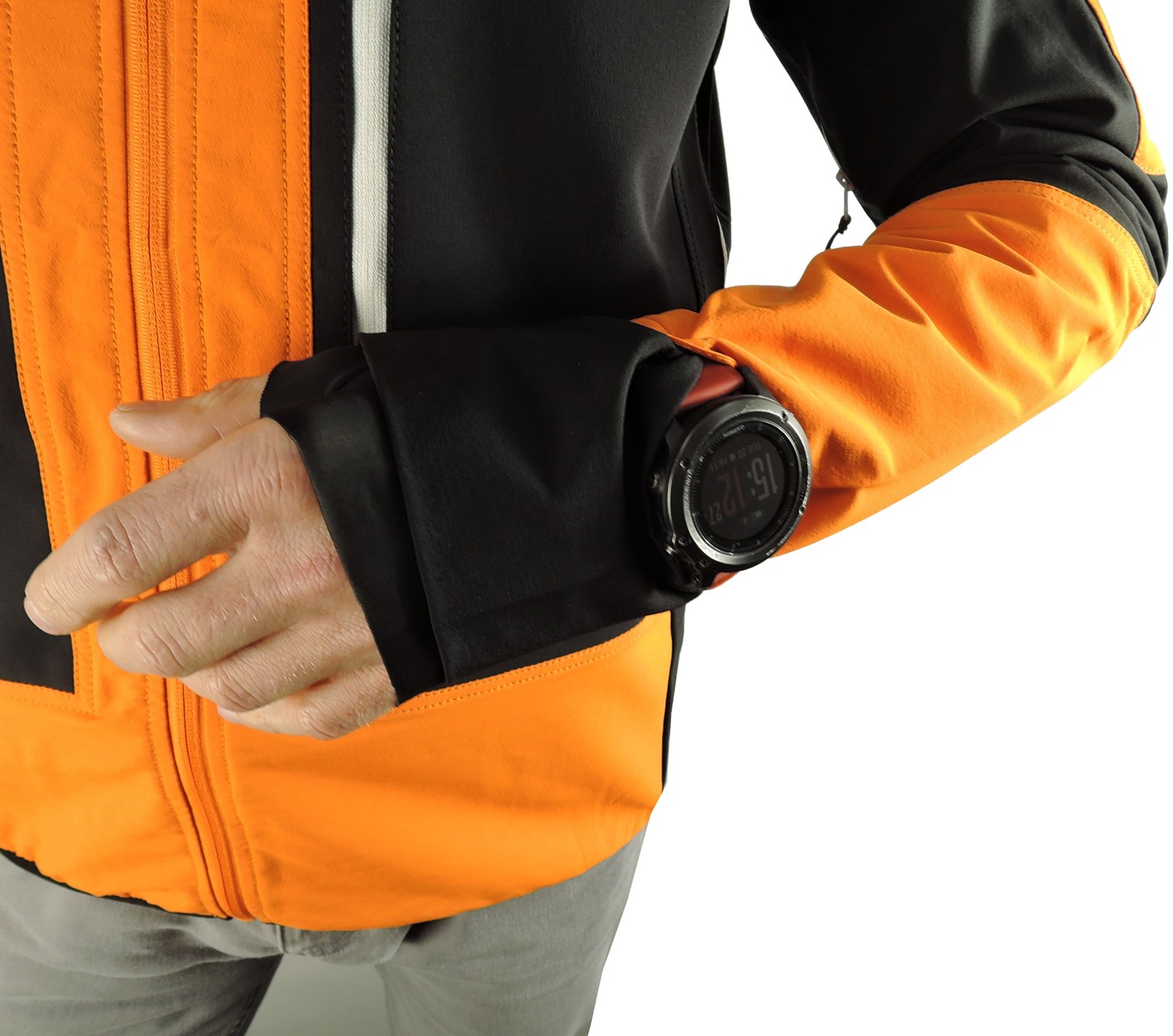 - rukávy zakončeny elastickým materiálem s otvorem na palec