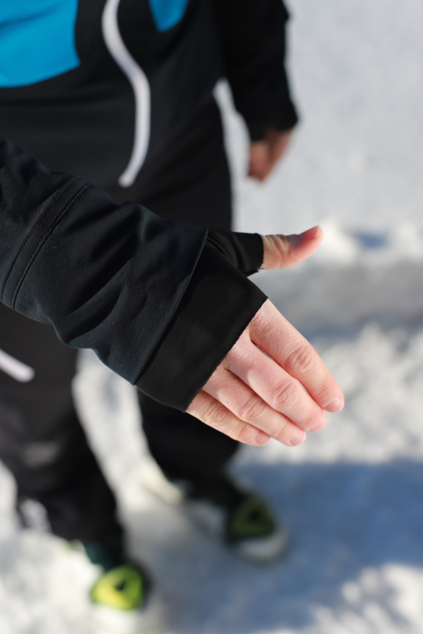 - rukávy zakončeny elastickým materiálem s otvorem na palec