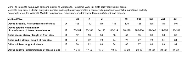 Pozor: střih u velikostí 2XL, 3XL a 4XL je oproti modelu Ultralight změněn a to ve prospěch pánů či dam s bříškem (v oblasti hrudníku a hlavně břicha je střih podstatně rozšířen)!